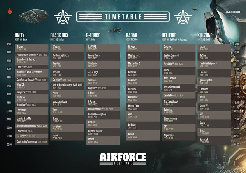 Timetable & floorplan now online! Check who, where and when so you don’t miss your favorite artists at AIRFORCE Festival 2018!